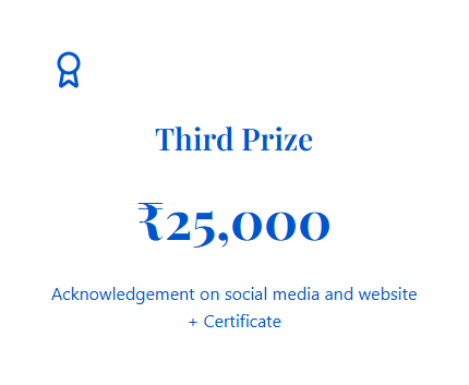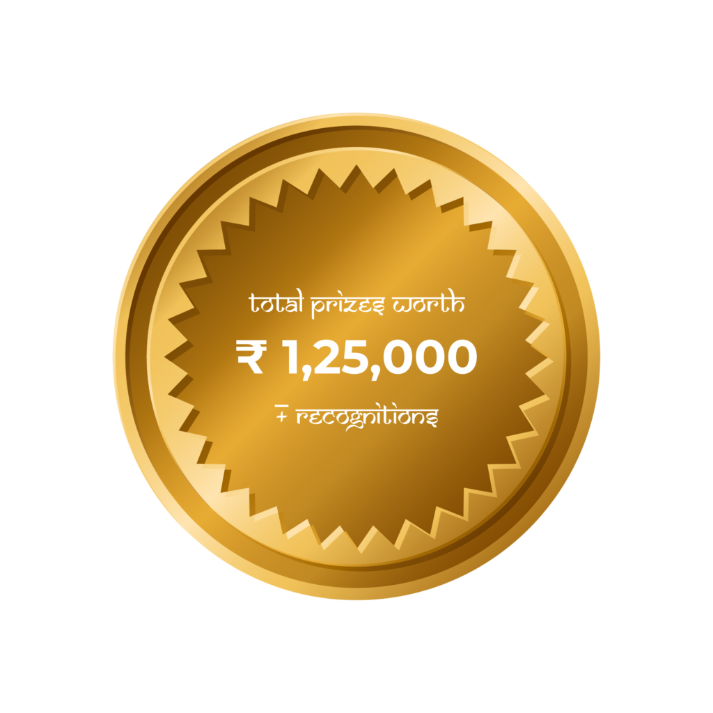 Total Cash Prizes Worth ₹ 1,25,000 INR with acknowledgements on websites, social media and certificates.